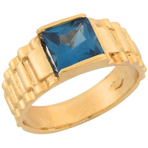 10k Gold Synthetic Blue Zircon Designer Inspired Band Ring - Product Detail